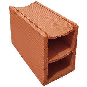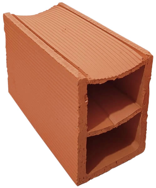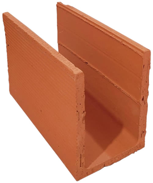 Canaleta de cerâmica vermelha, com formato U, utilizada para enchimento de concreto para vigas e vergas de lajes, substituindo as caixarias de madeira.