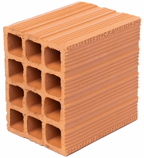 Tijolo convencional para construção civil fabricado em argila vermelha. Clique para ampliar: